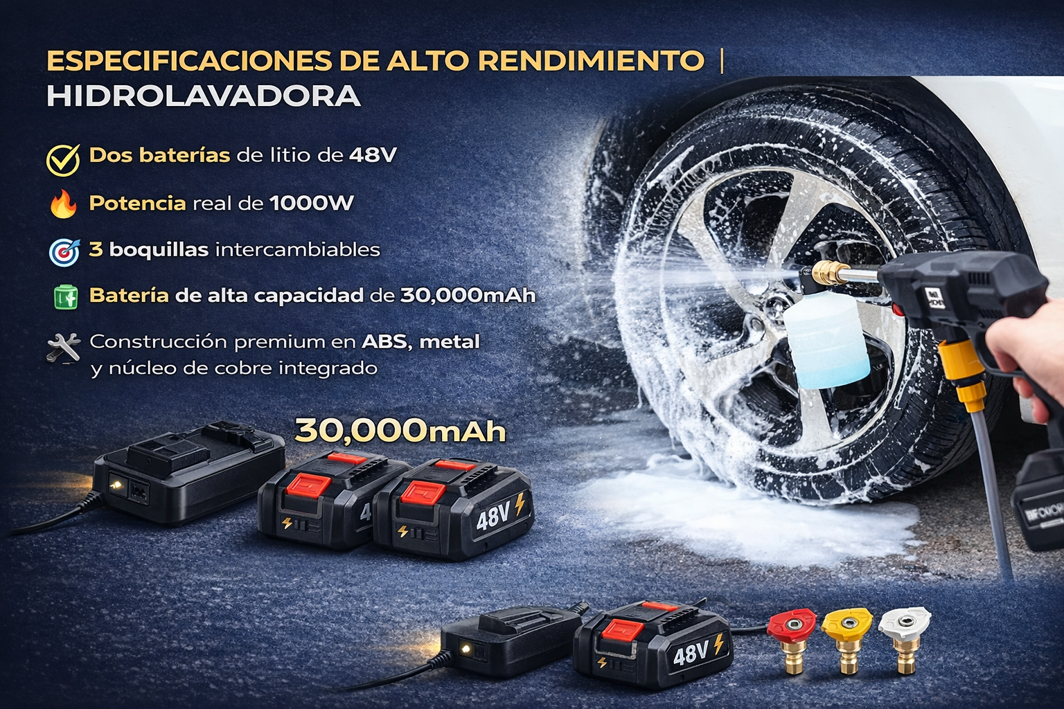 La compré para limpiar el coche y terminé usándola en toda la casa. La aspiradora tiene mucha fuerza y la hidrolavadora deja los rines como nuevos. Me gustó que no lleva cables y las baterías duran bastante. Muy práctica para el día a día.